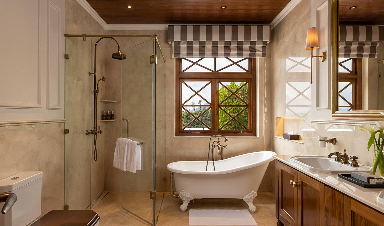 Artistically furnished with premium materials and tasteful decor, our two Luxury Suites are equipped with large en-suite bathrooms outfitted with his & hers vanities, rain showers and clawfoot bathtubs, as well as spacious private balconies that offer beautiful views of Nuwara Eliya.